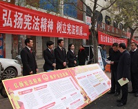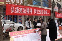 柘城县检察院:该院检察长马知权、副检察长吉留锋带领部分干警来到本县华景路广场,布置展台、发放宣传册页、解答群众法律咨询,开展法律宣传活动。上午十点,马知权带领大家参加由公检法司等部门共同举行的宪法宣誓活动。 宁陵县检察院:该院在清水河广场上举行“宪法日”宣传活动。在一上午的集中宣传过程中,干警们通过发放宣传手册、开展法律咨询等形式,积极向群众宣传党的十九大精神、宣传宪法知识和检察机关职能,现场发放宣传资料200余份,接待群众咨询30余人次。 睢县检察院:该院预防局、控申科干警冒着严寒,在本县五号卫星湖广场进行宪法法宣。在宣传现场,干警们向群众发放宣传资料500余本,现场解答群众提出的法律问题,受到了群众的一致好评。 民权县检察院:该院组织干警来到民生广场,通过设立宣传台、发放资料等形式,为过往的市民提供法律帮助,宣传法律知识。此次活动共接待市民来访40余人次,发放资料300余份,为市民解答疑难法律问题近20个。