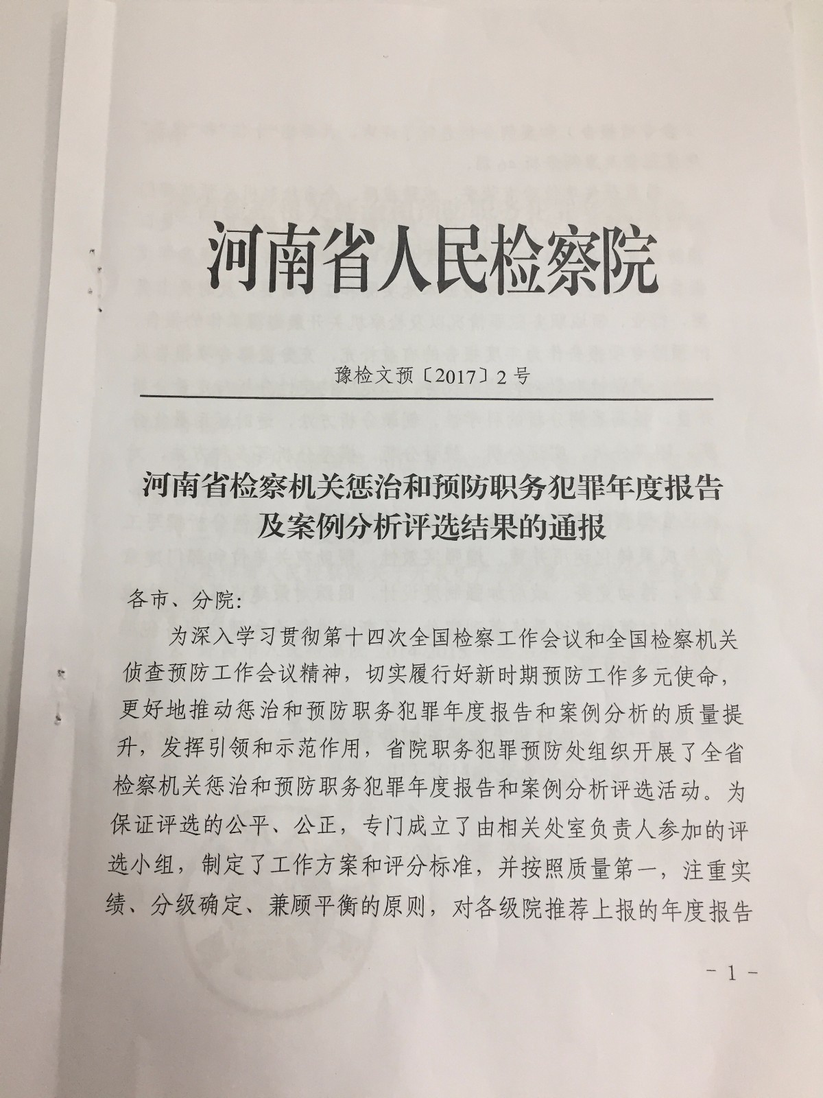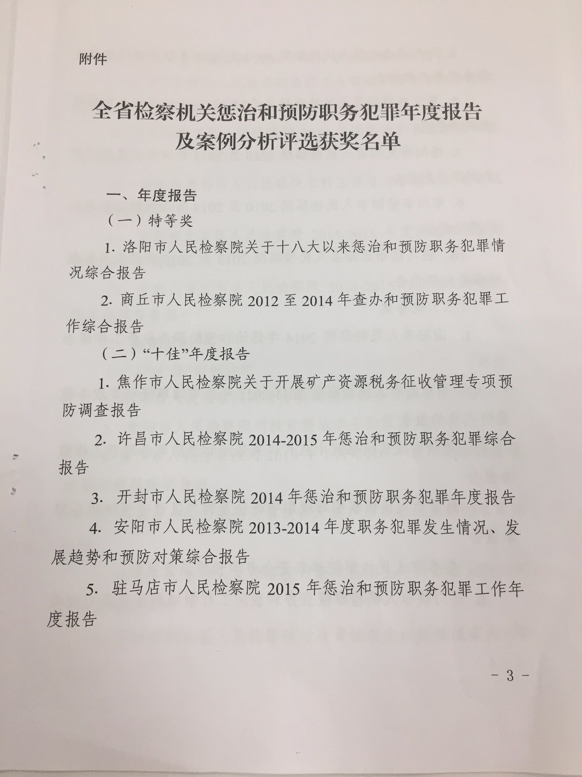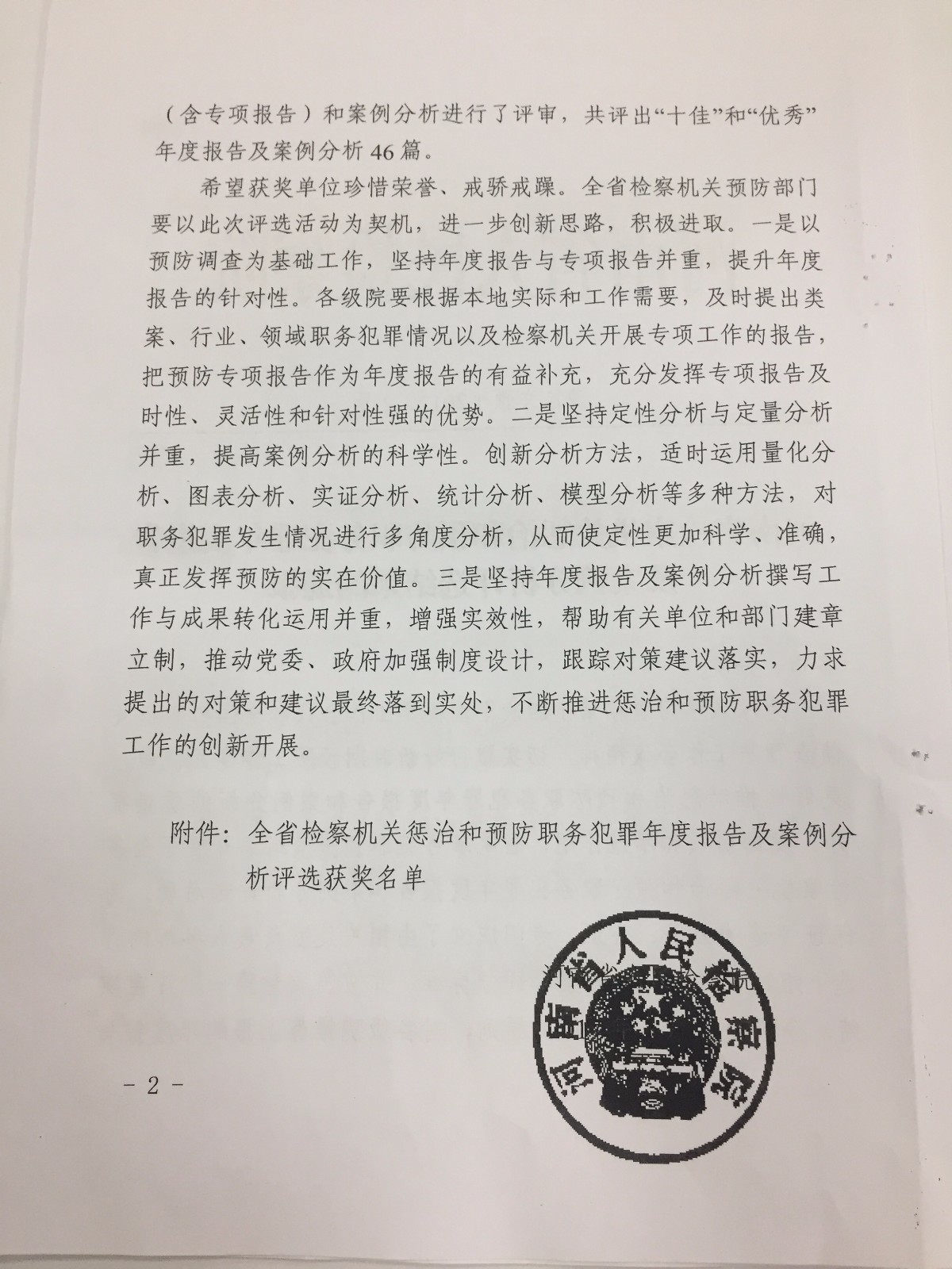 检察机关惩治和预防职务犯罪年度报告及案例分析评选结果的通报