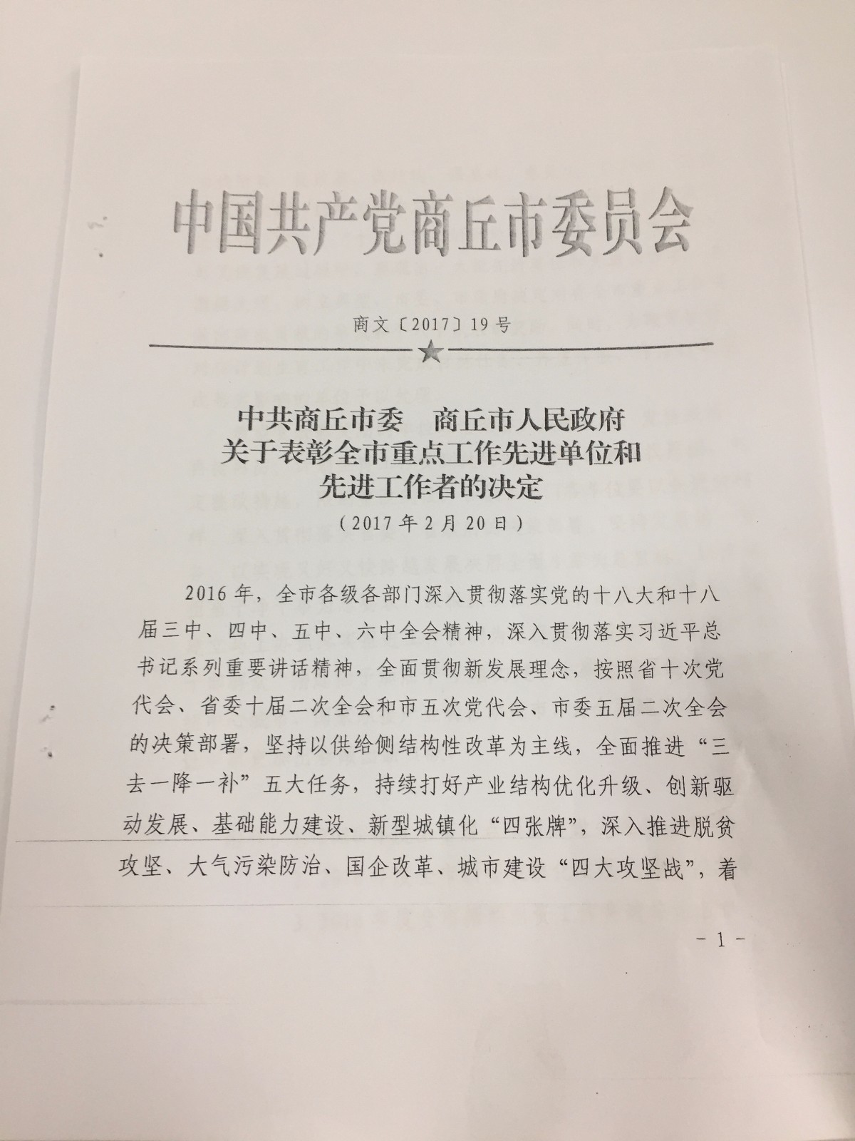 中共商丘委 商丘市人民政府关于表彰全市重点工作单位先进单位和先进工作者的决定